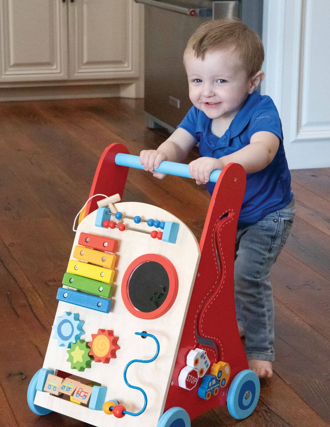 When children begin walking, they need support that helps develop their confidence while allowing them to foster a sense of independence. With Nuby’s Wooden Baby Walker, your child will build the skills they need to take on the world! The walker’s push and pull function encourages first steps by providing sturdy support for little hands to hold on to. As children hold themselves steady while using the walker, they build leg and core strength with every step. Nuby’s Wooden Baby Walker includes various activities that will delight and entertain while also engaging and developing fine motor skills. With 100% FSC-certified wood from well-managed forests, Nuby's Wooden Baby Walker also keeps the planet's health and development in mind. Watch your little one play, learn, and grow with the help of Nubys' Wooden Baby Walker.